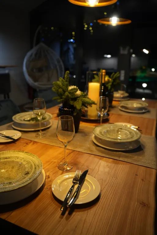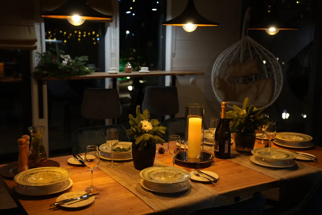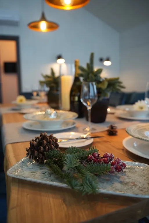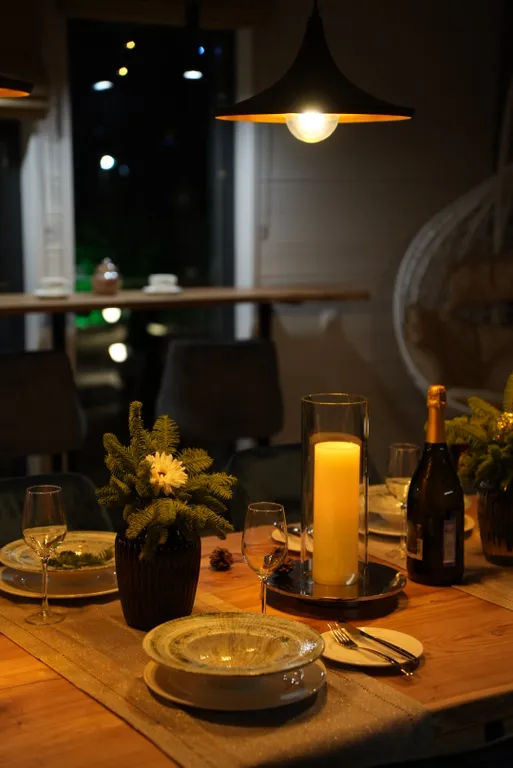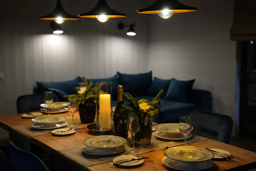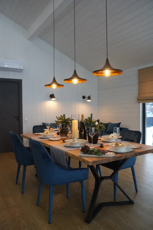 - Терраса с удобными шезлонгами, пледами и атмосферным освещением для отдыха на свежем воздухе.