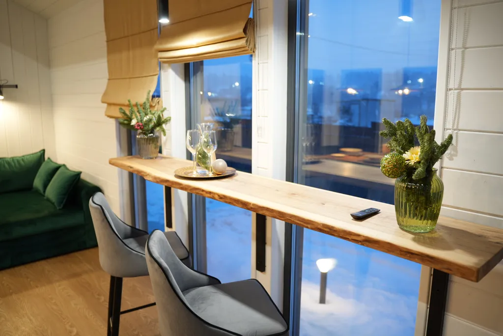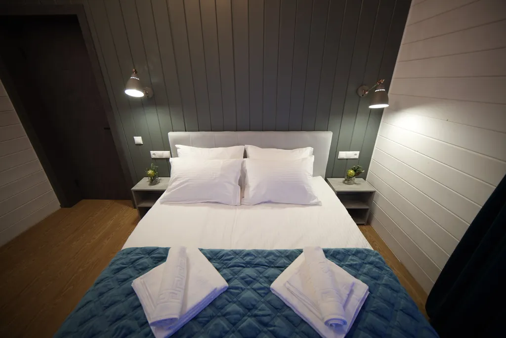 Дома включают максимальное количество гостей — 6 (взрослых). Во всех домах предусмотрены тёплые полы и кондиционеры.