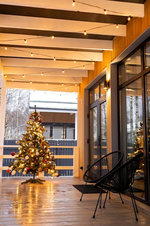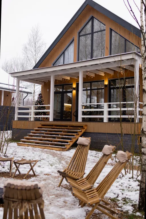 -Дом имеет просторную террасу с видом на березовую рощу.