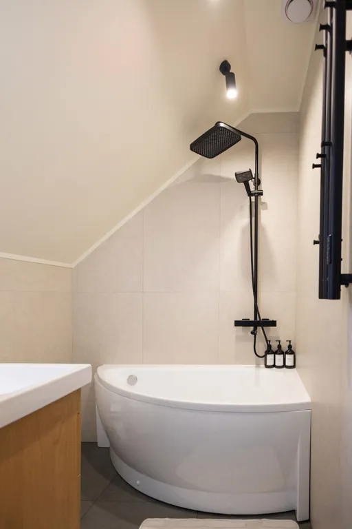 - На 1 этаже находится финская сауна, совмещенная с душем и санузел. На 2 этаже ванная комната.