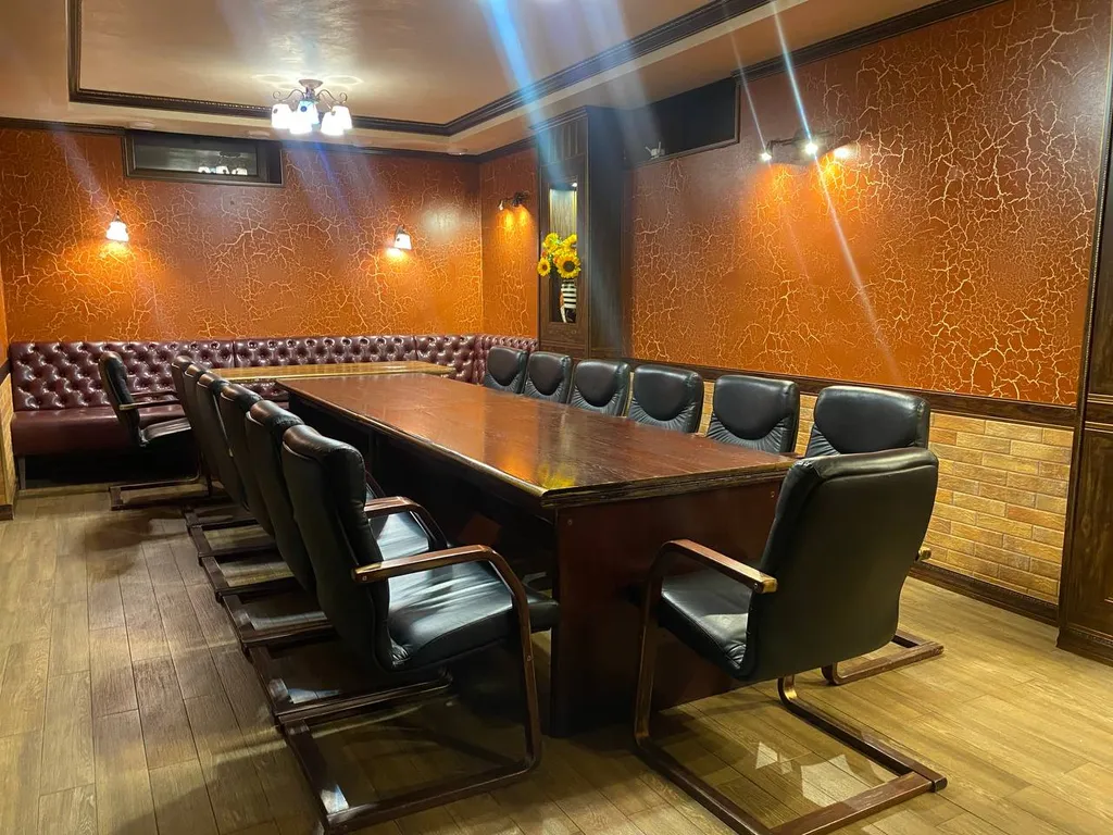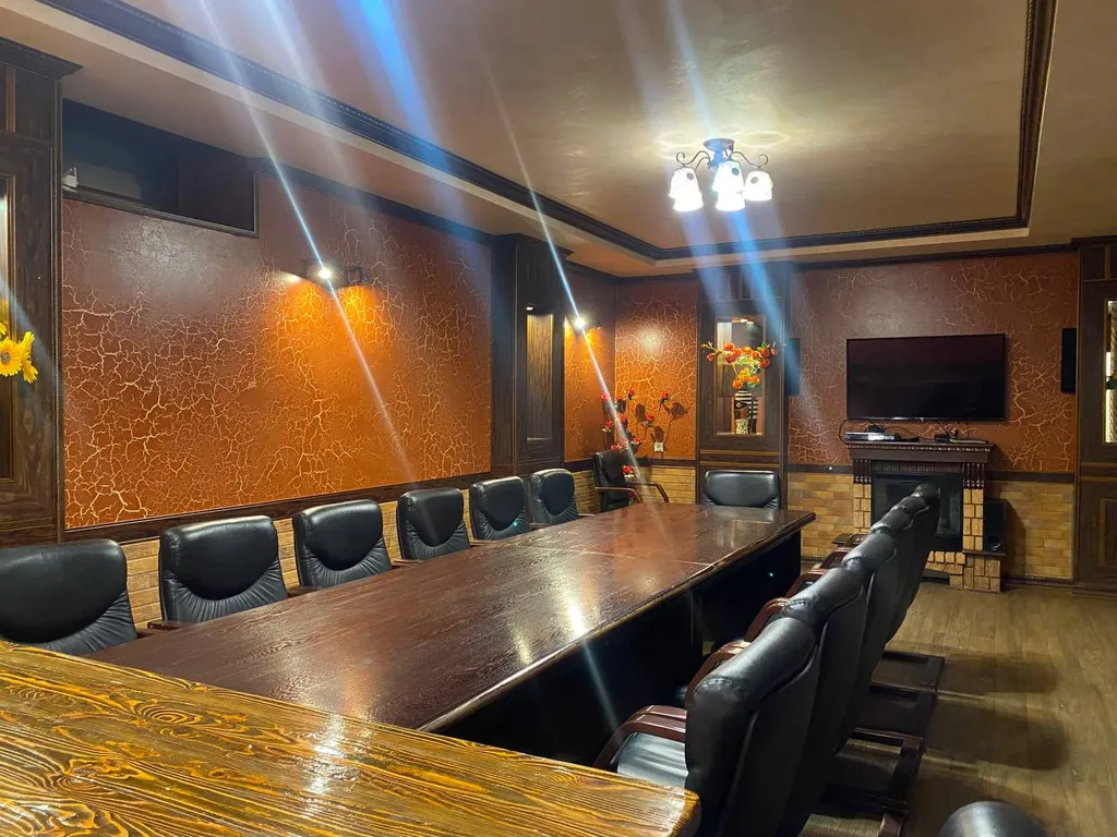 Домики оформлены с максимальной элегантностью, каждом из них финская сауна, гостиная, две спальни, кухня, оснащенная современной техникой, душ, два санузла. В 3-х домах есть банкетные залы с камином и караоке на 20 человек для проведения конференций и банкетов, отметить день рождения, мини свадьбы. В одном из домов современная бильярдная. А также есть камин, караоке, банкетный зал на 15 человек.