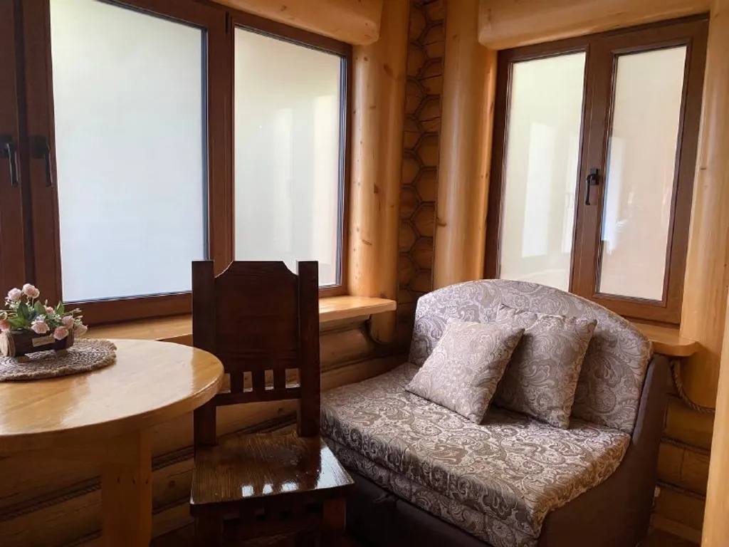 Домики оформлены с максимальной элегантностью, каждом из них финская сауна, гостиная, две спальни, кухня, оснащенная современной техникой, душ, два санузла. В 3-х домах есть банкетные залы с камином и караоке на 20 человек для проведения конференций и банкетов, отметить день рождения, мини свадьбы. В одном из домов современная бильярдная. А также есть камин, караоке, банкетный зал на 15 человек.