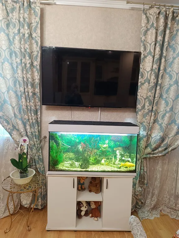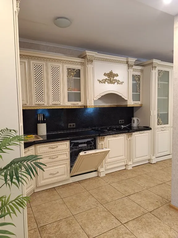 Полный набор бытовой техники: холодильник, духовой шкаф, посудомоечная и стиральная машины, телевизор.
