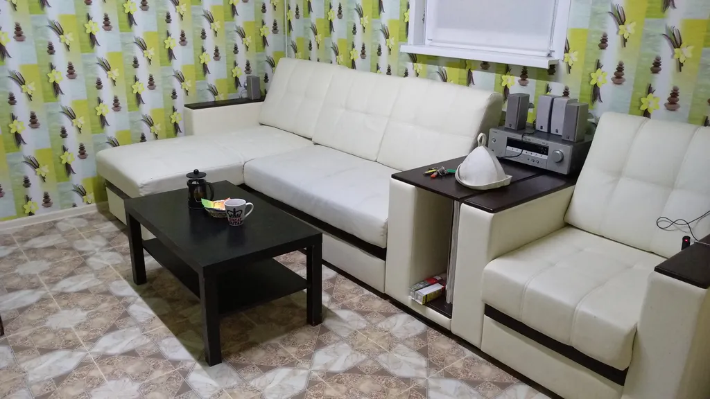 Кровать двуспальная - 3 шт., диван раскладной - 7 шт., кухня, тумбы, столы, стулья.