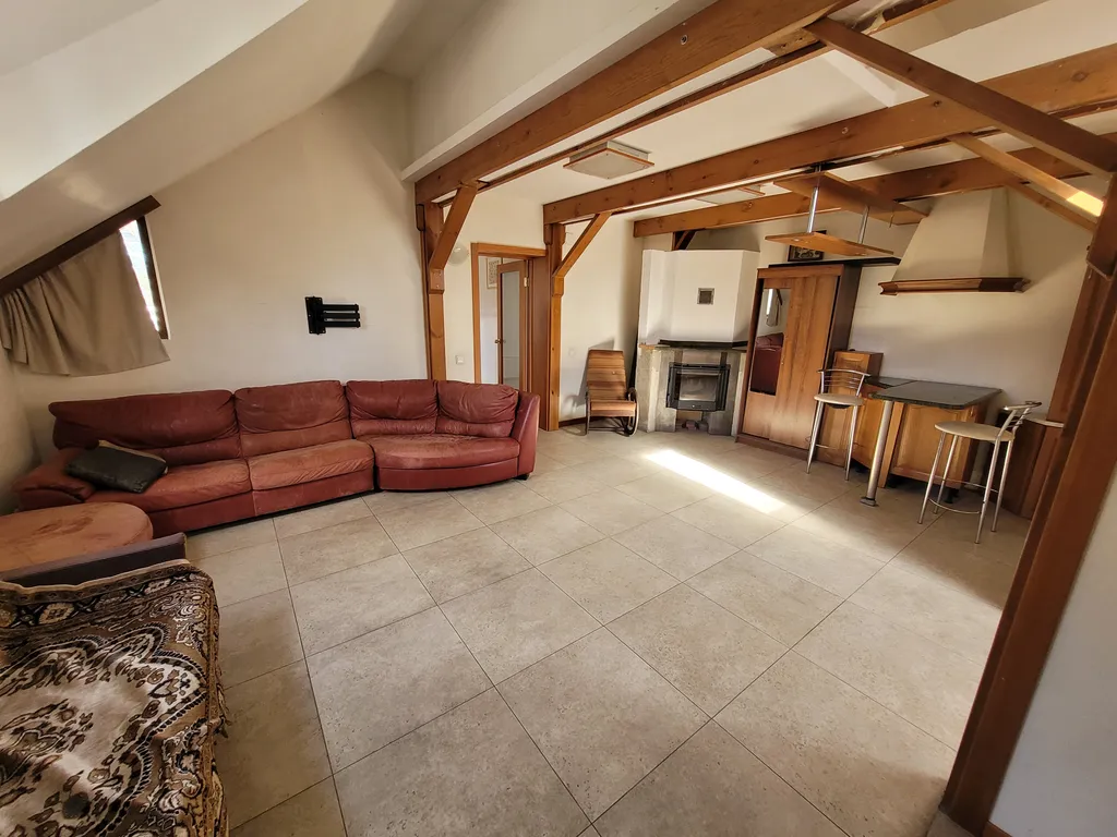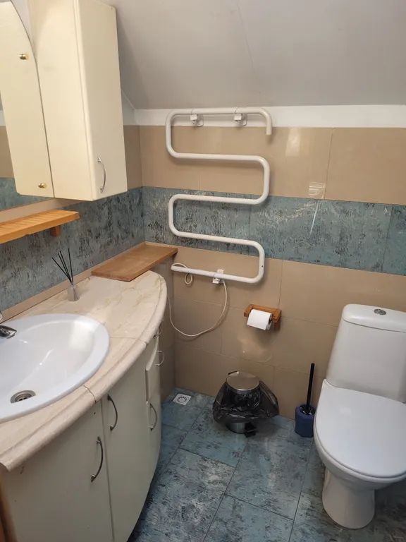 3 спальни, 3 санузла, 2 просторных гостиных по 30 метров, кухня, видовая комната в башне, огромная терраса, камин, сауна, гардероб в прихожей.