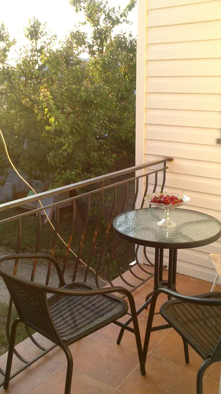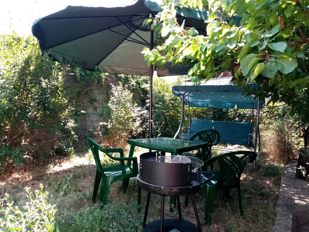 В вашем личном распоряжении плодоносящий сад с качелями со столиком, зонтом и стульями, и место для мангала.
