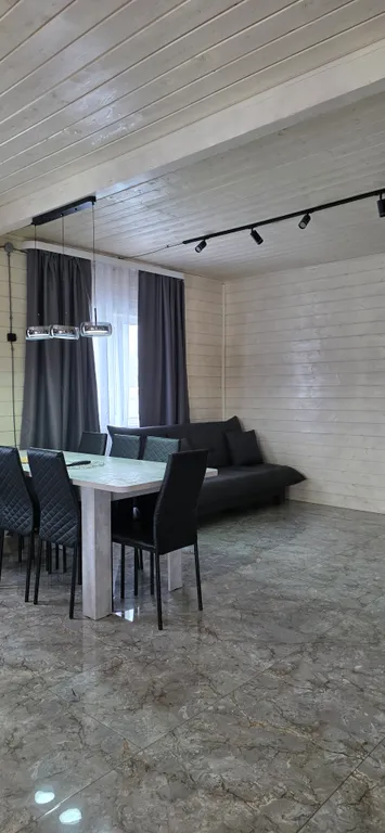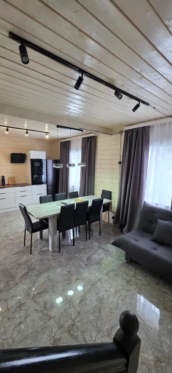 На всем первом этаже тёплый пол. В гостиной большой телевизор, музыкальная колонка с микрофоном.