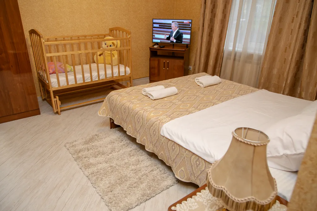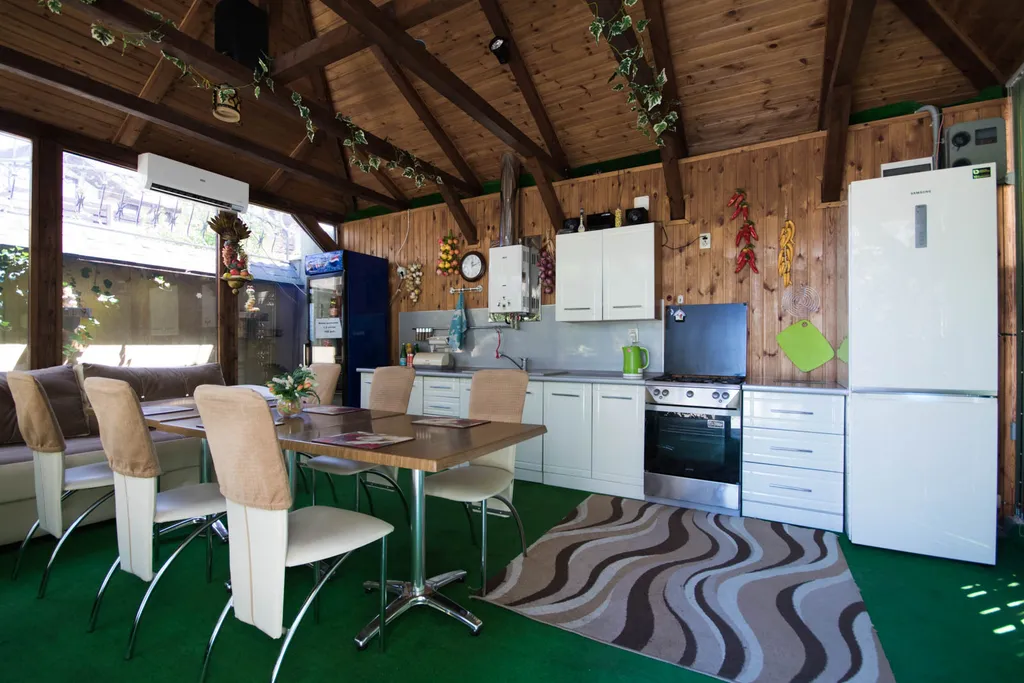 Полностью оборудованная техникой и посудой кухня. Москитные сетки. Для детей предоставляем 2 детские кроватки, стульчик для кормления.