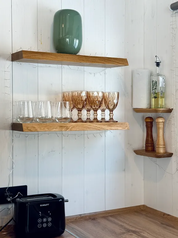 В доме есть все для комфортного проживания: кондиционер, холодильник, варочная панель, чайник, кофемашина, тостер, микроволновая печь, посудомоечная машина. Полный набор посуды и столовых принадлежностей. Соль, сахар, чай-кофе, растительное масло – всегда в наличии.