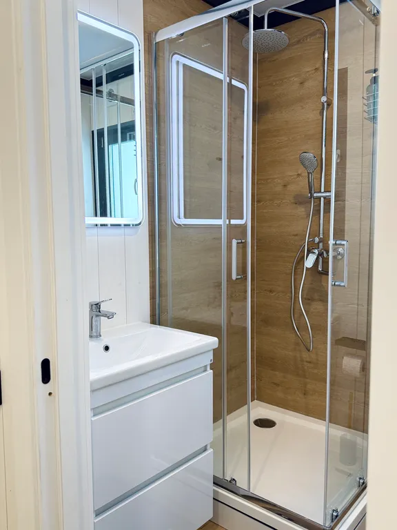 В ванной есть стиральная машина, фен, полотенца для каждого гостя, шампунь, кондиционер и гель для душа.