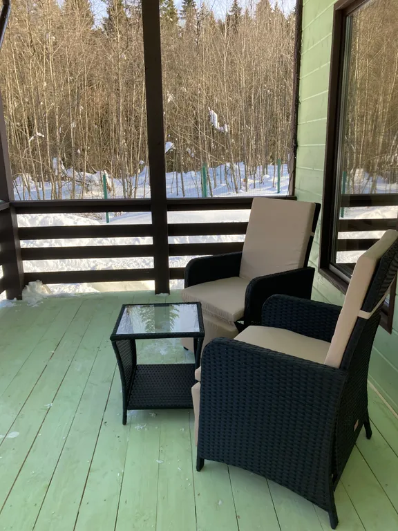 Расслабьтесь вдали от городской суеты и шума в уединенном домике с видом на лес. Здесь есть терраса с удобными креслами и мангалом-BBQ (специальные угли для мангала такого типа можно приобрести на месте за 500₽)