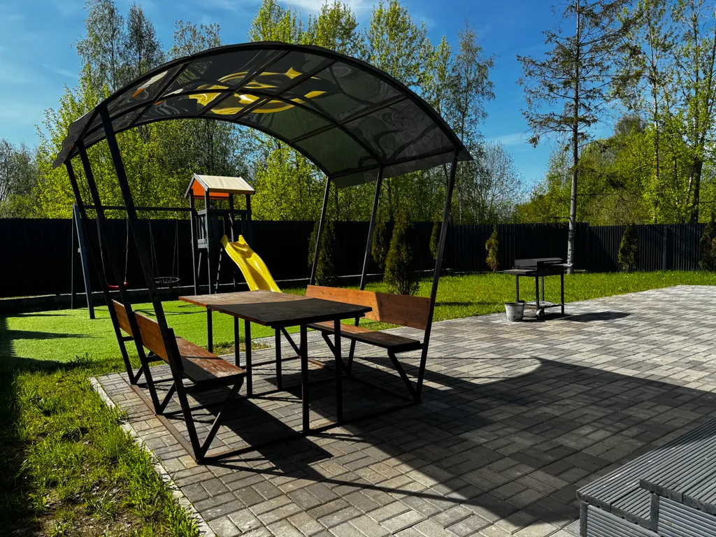 это полноценное место для отдыха после трудового дня как для большой компании, так и наедине с самыми близкими людьми. Также на территории предусмотрено безопасное место для детских игр. Ребенок сможет познавать мир на открытом воздухе, и при этом будет в полной безопасности.