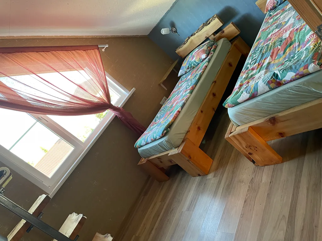 Количество спальных мест 12. Три двуспальных кроватей, 4 односпальных кроватей и один двуспальный диван.