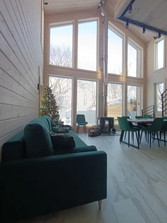 Дом оснащён всем необходимым для ценителей комфорта! Полностью подойдёт для уютного семейного отдыха и умиротворения. А виды из панорамных окон этого барнхауса никого не оставят равнодушным!