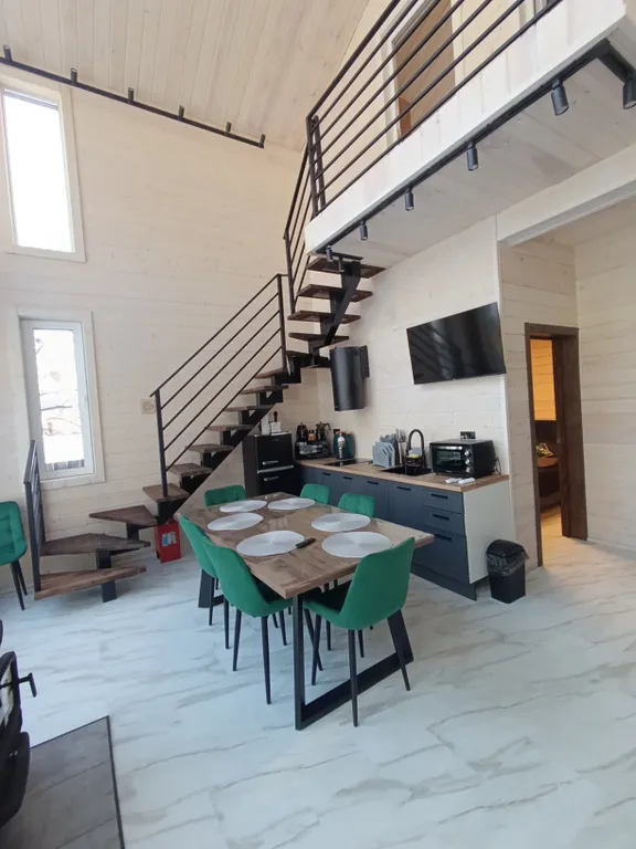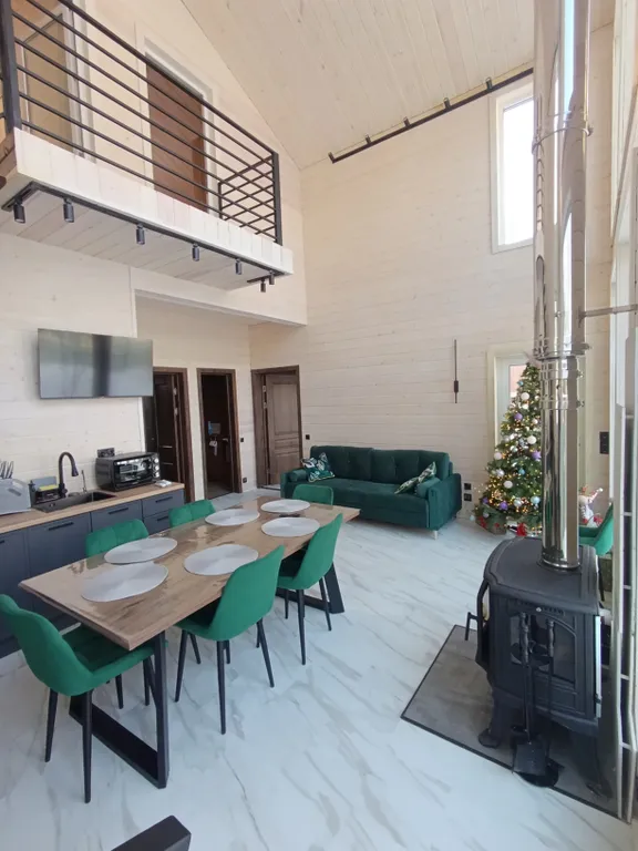 В доме с комфортом разместятся 6 человек, максимальная вместимость — до 8 человек.