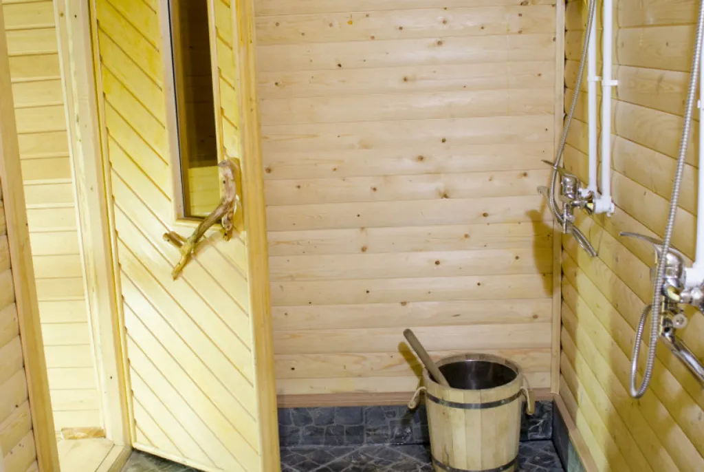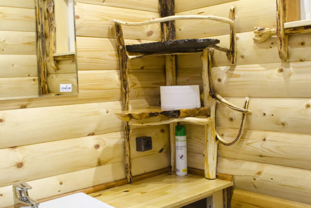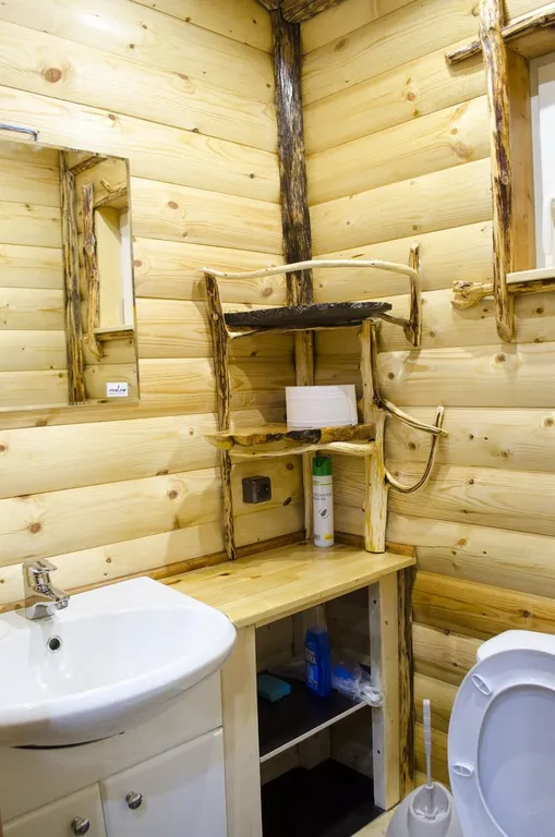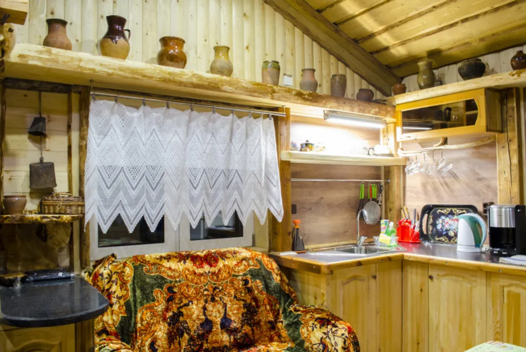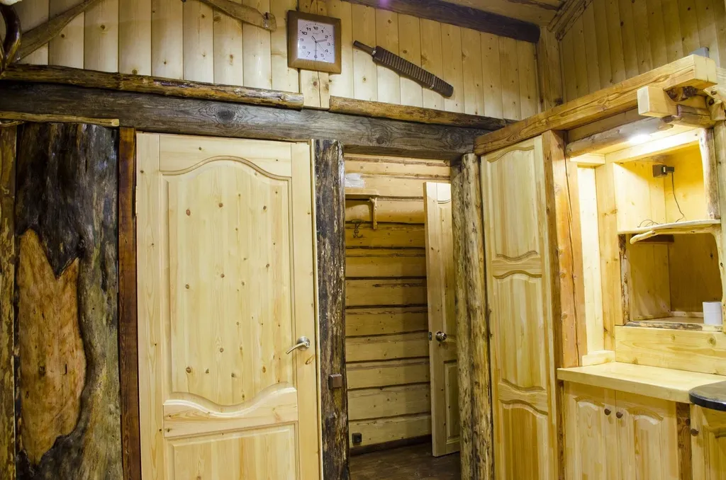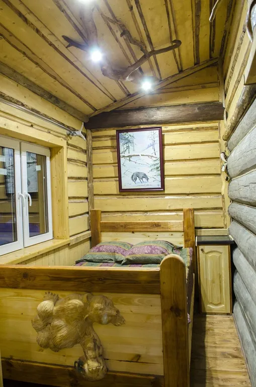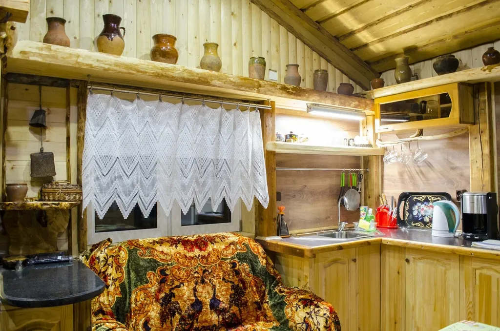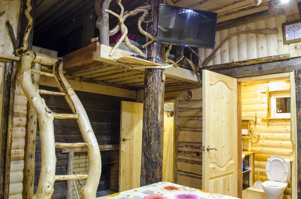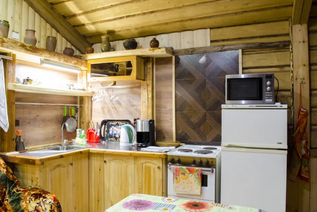 Непередаваемые ощущения и море эмоций Вам оставит кровать-палати, выполненная над сауной. Как в старые добрые времена у бабушки в деревне! В коттедже все удобства для комфортного отдыха: душ, туалет, большая сауна, оборудованная кухня!